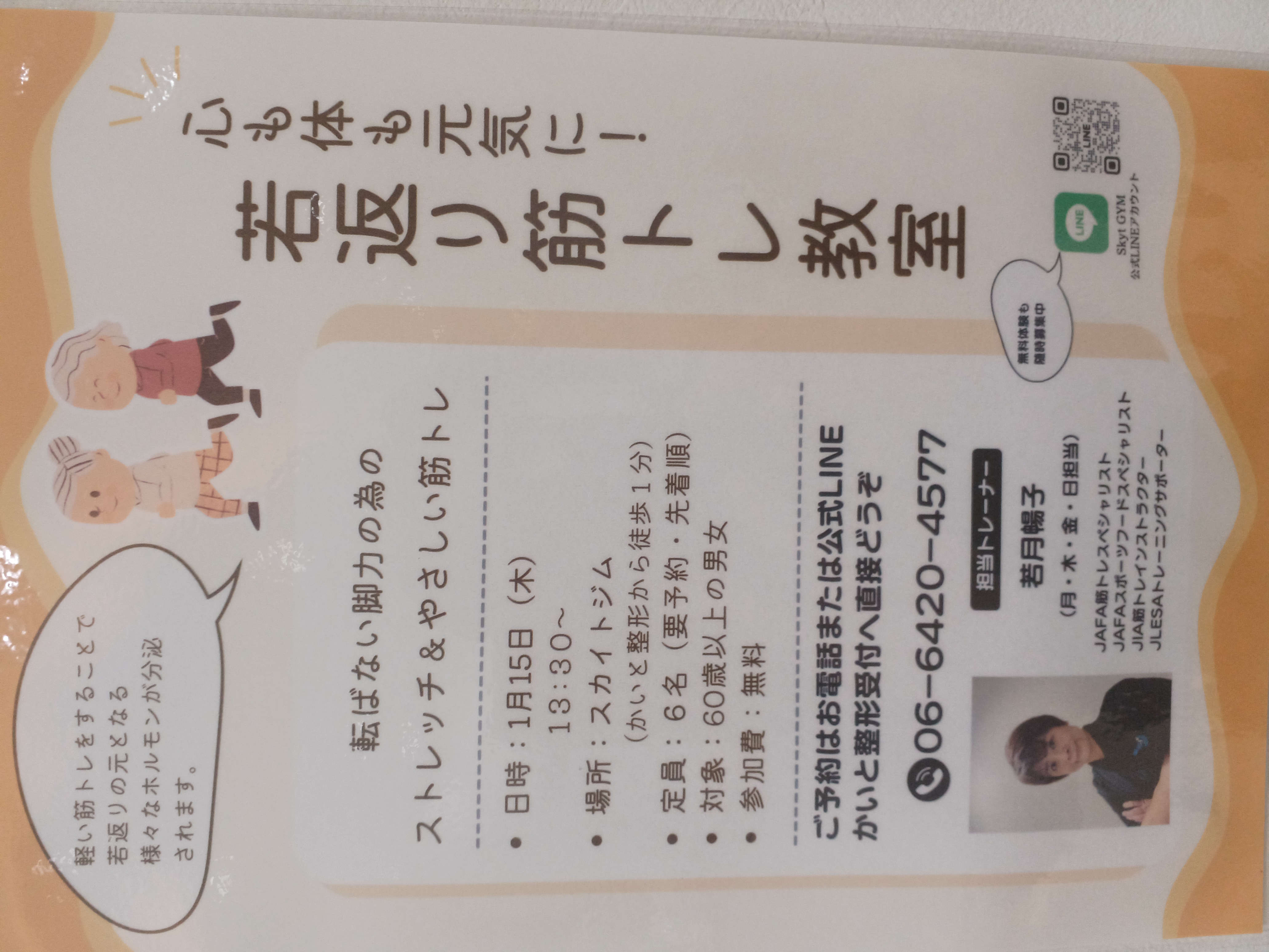 若返り筋トレ教室のお知らせ(予約制)